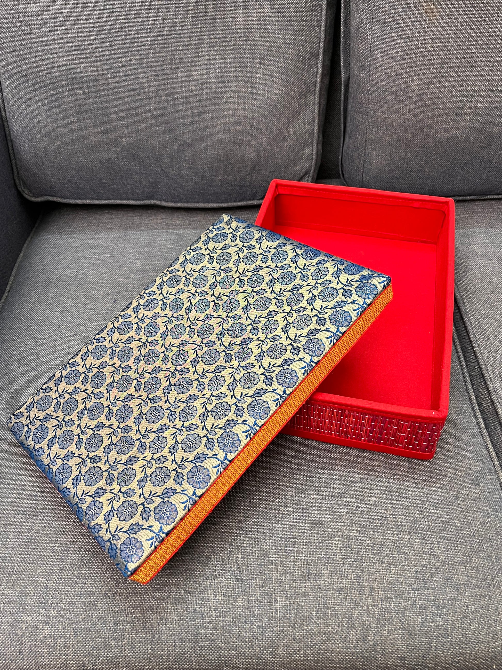 A beautifully woven korai box with brocade finishing perfect to store your cherished wedding saree or gift to loved ones.