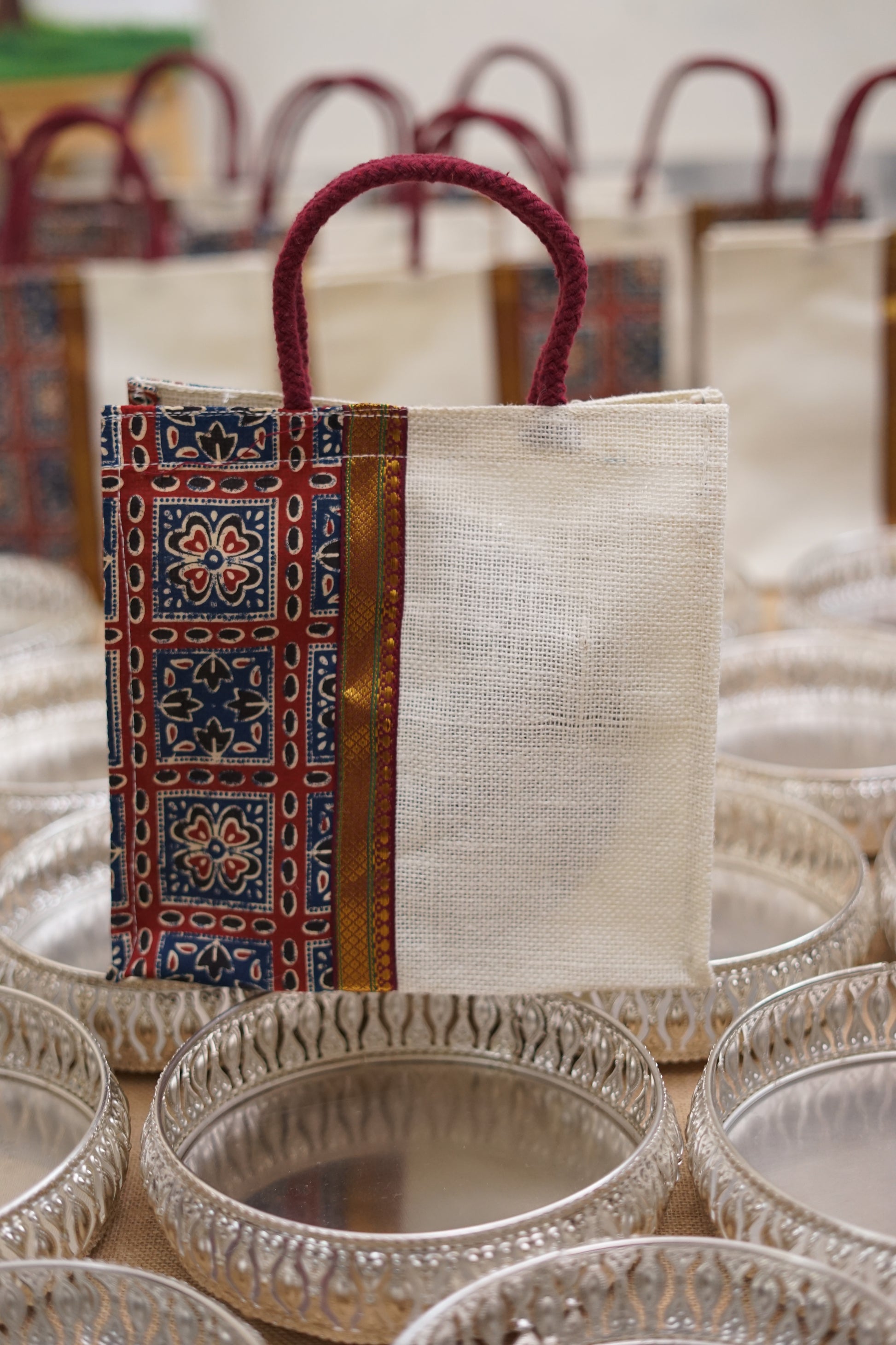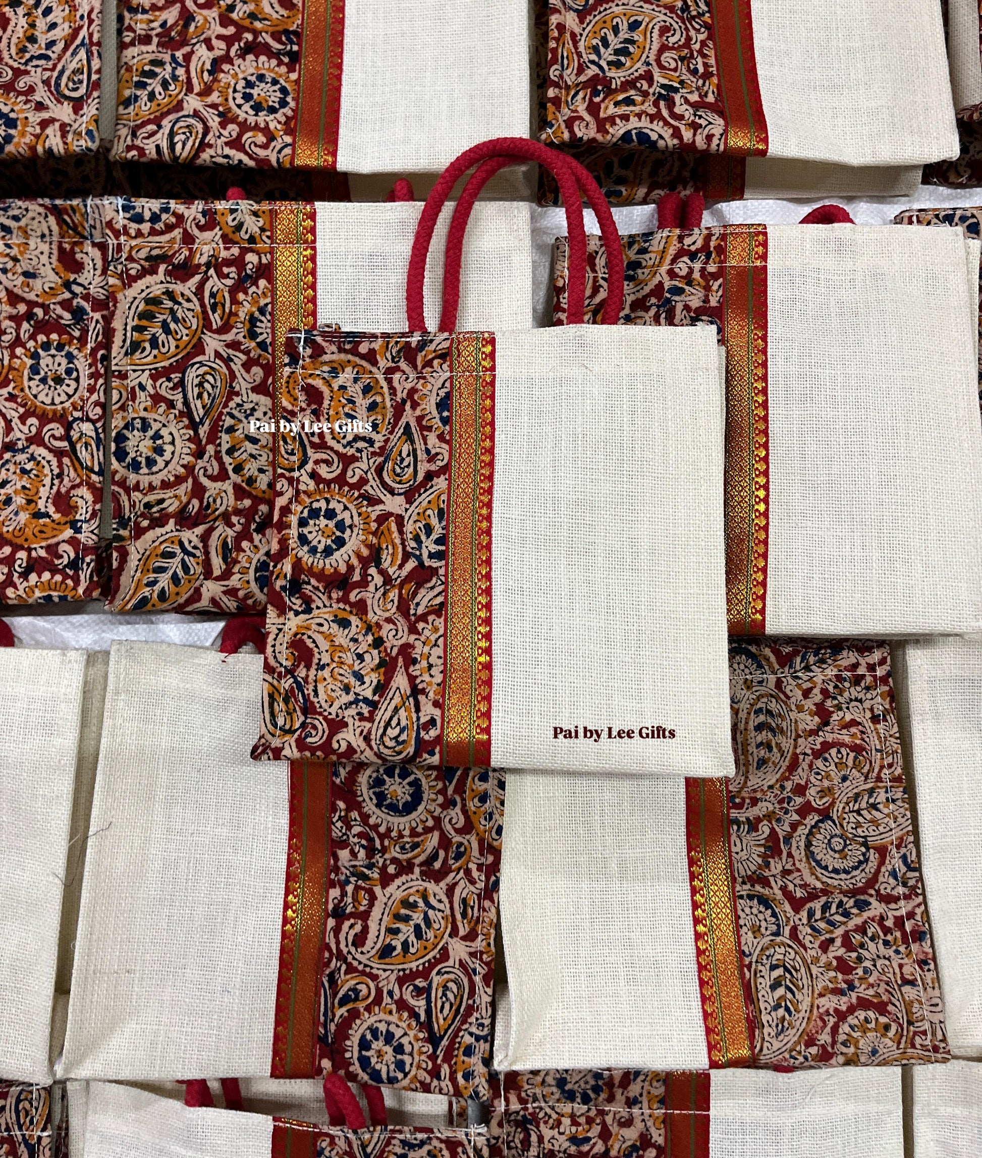 material - full jute completely with sturdy color handle and pure Kalamkari