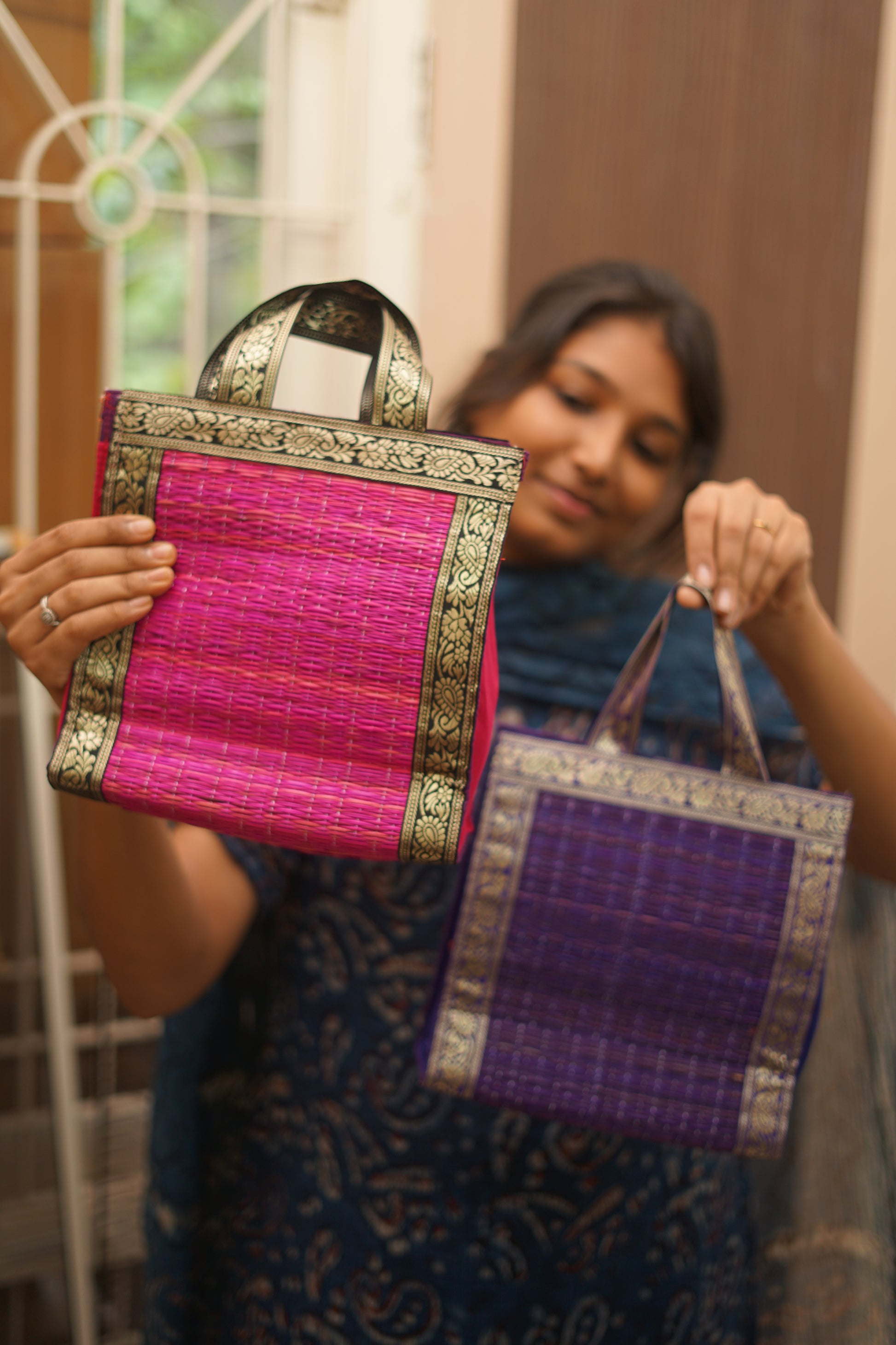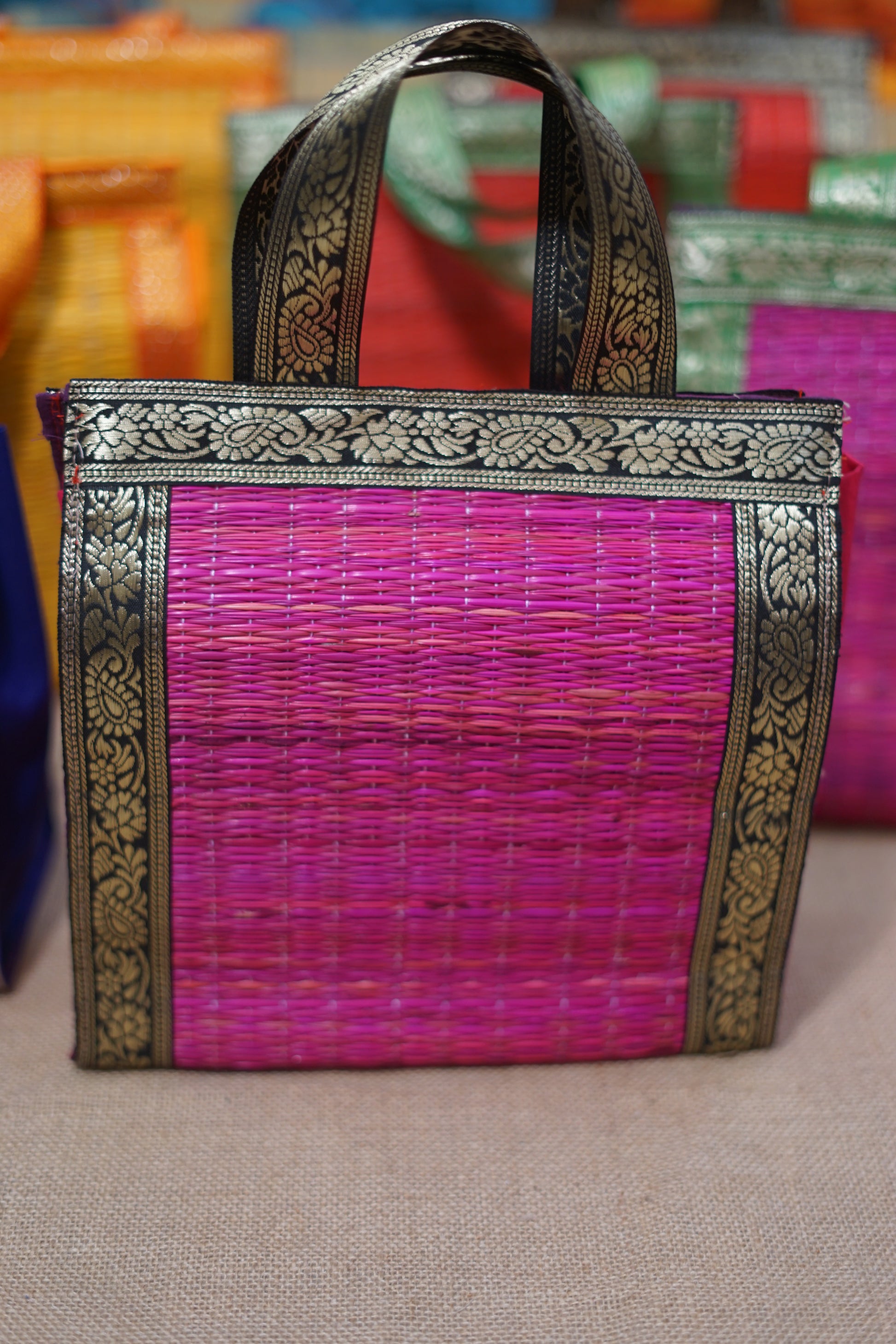 Carry a piece of tradition with you. Our Korai bags are meticulously handwoven by skilled artisans of Tamil Nadu using natural korai grass, reflecting the rich heritage and timeless artistry of the region. Each bag tells a story of sustainability, craftsmanship, and cultural pride. Lightweight yet durable, these bags are perfect for everyday use, festive occasions, or as meaningful gifts. Embrace handmade charm with a modern touch of tradition.