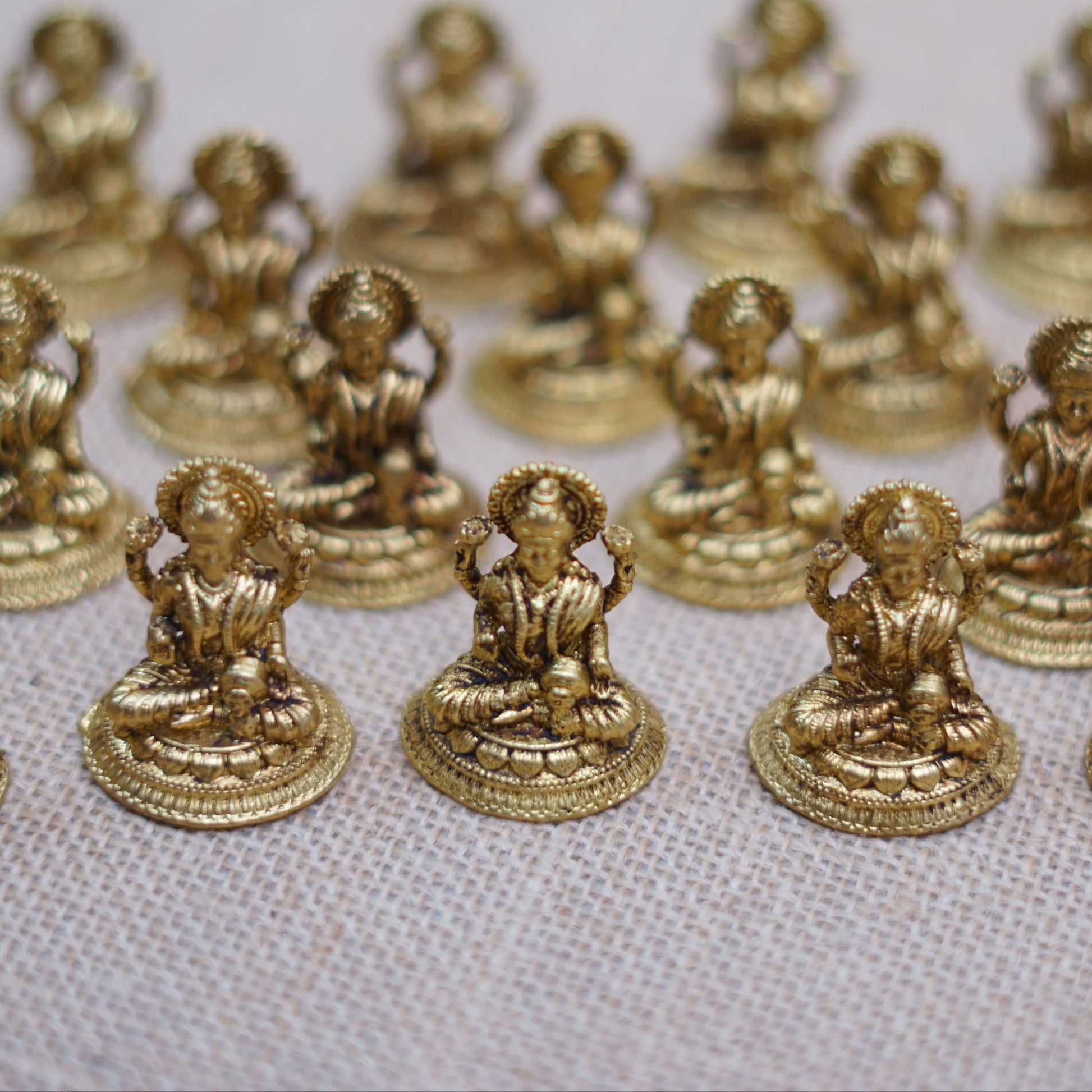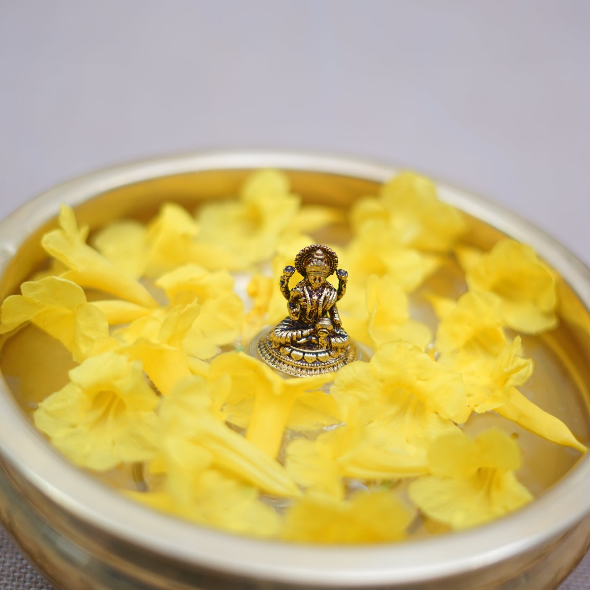 This 2-inch pure brass Lakshmi idol is a symbol of prosperity and divine grace.